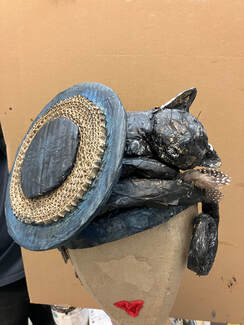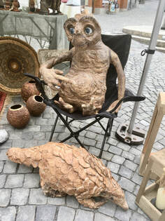 C’est en duo avec christophe qui assure infailliblement la partie technique dans mes idées fofolles (déjà, pour qu’elles tiennent debout) que je peux exprimer Mon côté rêveur et joueur qui se révèle dans la réalisation d’animaux, de décor ou de personnages fantastiques que je crée tout en papier mâché.