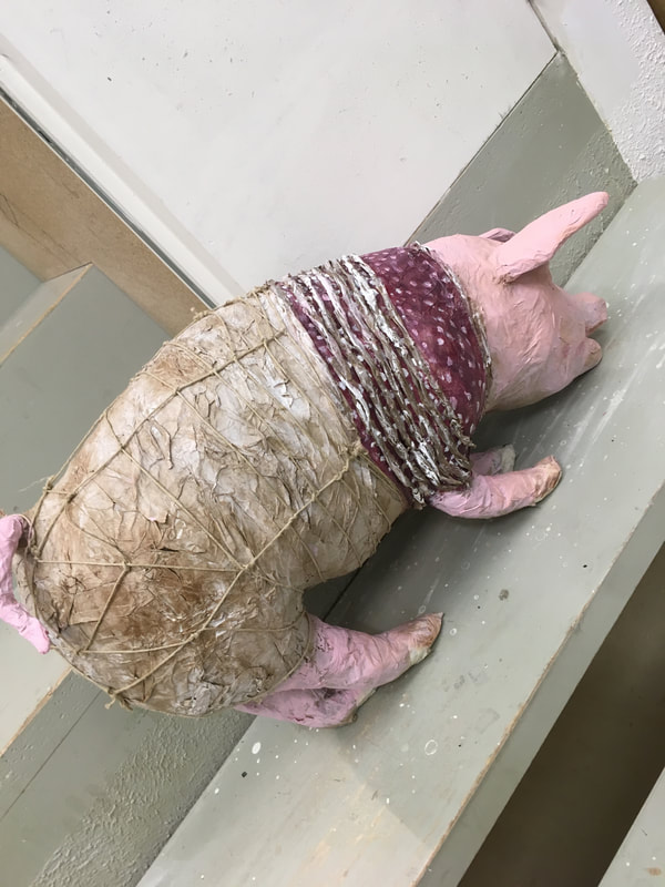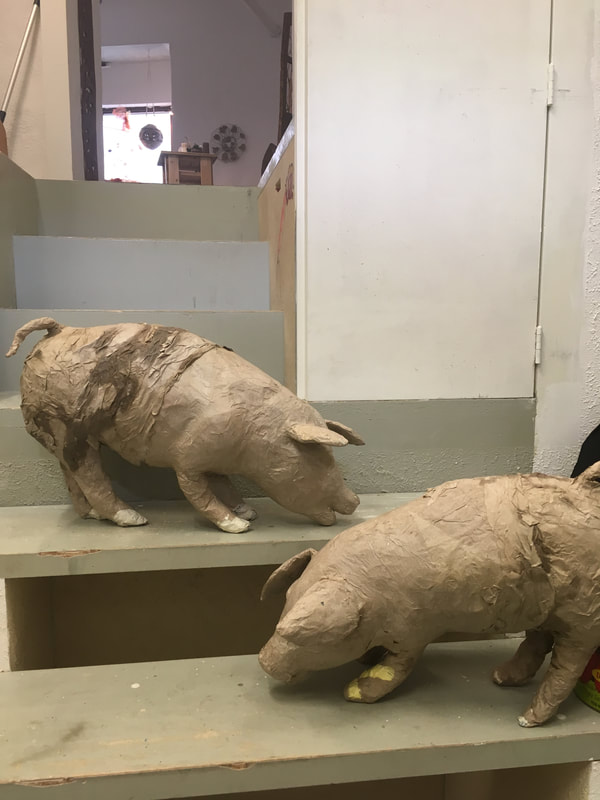 Collection de printemps 2017- Tout en papier mâché – « Les poules débarquent à la boutique Le 26 » chez Aline Delessert.